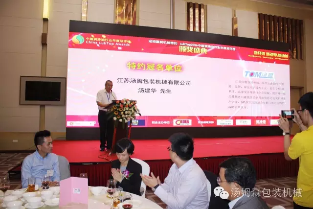 頒獎(jiǎng)典禮上,湯姆集團(tuán)董事長(zhǎng)湯建華先生接受了中國(guó)潤(rùn)滑油信息網(wǎng)的獨(dú)家專訪。他說(shuō),衷心祝賀中國(guó)潤(rùn)滑油行業(yè)奧斯卡年度頒獎(jiǎng)盛典今日廣州隆重舉行,湯姆集團(tuán)榮獲“ LubTop2016年度行業(yè)供應(yīng)鏈金牌服務(wù)商”和“LubTop2016 年度具工匠精神獎(jiǎng)”兩項(xiàng)殊榮,這是整個(gè)潤(rùn)滑油行業(yè)對(duì)湯姆的高度認(rèn)可,江蘇湯姆集團(tuán)會(huì)研發(fā)出越來(lái)越多的高新科技型產(chǎn)品,用“工匠”精神把潤(rùn)滑油包裝機(jī)做強(qiáng)、做透、做得更專、更精,為廣大客戶提供更加優(yōu)質(zhì)、高效、專業(yè)的包裝設(shè)備。