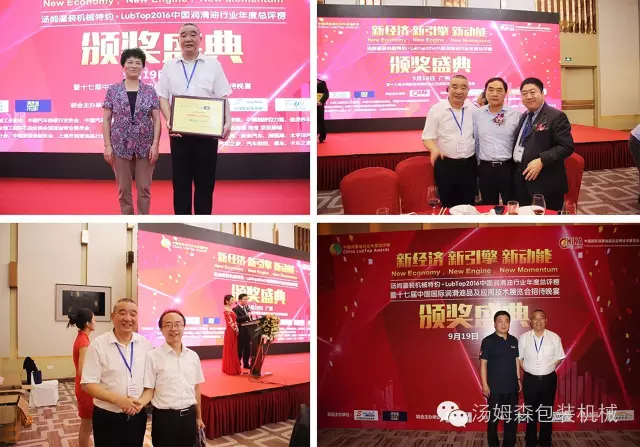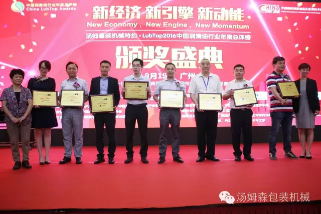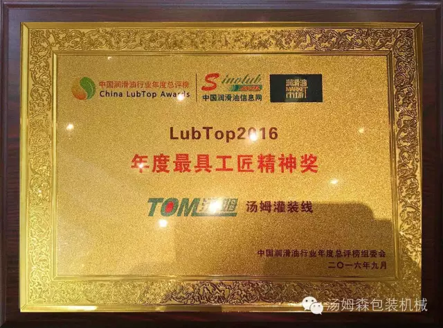 2016年9月19日,在花城廣州舉辦的“LubTop2016中國(guó)潤(rùn)滑油行業(yè)年度總評(píng)榜”頒獎(jiǎng)盛典上,江蘇湯姆集團(tuán)的設(shè)備贏得了社會(huì)公眾和專家評(píng)委的廣泛認(rèn)可,終榮獲“ LubTop2016年度行業(yè)供應(yīng)鏈金牌服務(wù)商”和“LubTop2016 年度具工匠精神獎(jiǎng)”兩項(xiàng)殊榮,湯姆集團(tuán)董事長(zhǎng)湯建華出席了頒獎(jiǎng)盛典。這是整個(gè)潤(rùn)滑油行業(yè)對(duì)湯姆集團(tuán)的高度認(rèn)可。