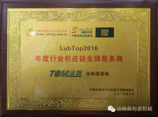 江蘇湯姆集團(tuán)終榮膺服務(wù)獎(jiǎng)——“LubTop2016年度行業(yè)供應(yīng)鏈金牌服務(wù)商”獎(jiǎng)。