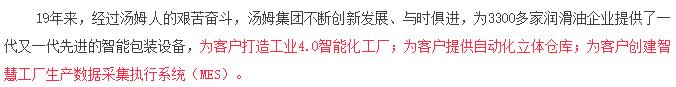 【福利】湯姆集團--湯姆森--國內(nèi)唯一成功替代進口灌裝線的潤滑油智能裝備生產(chǎn)企業(yè)