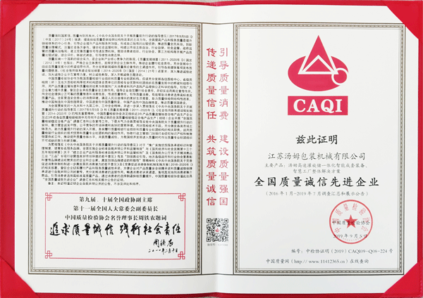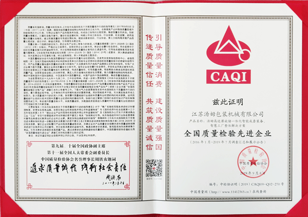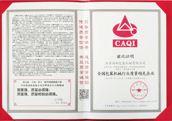 全國(guó)包裝機(jī)械行業(yè)質(zhì)量領(lǐng)先企業(yè)
