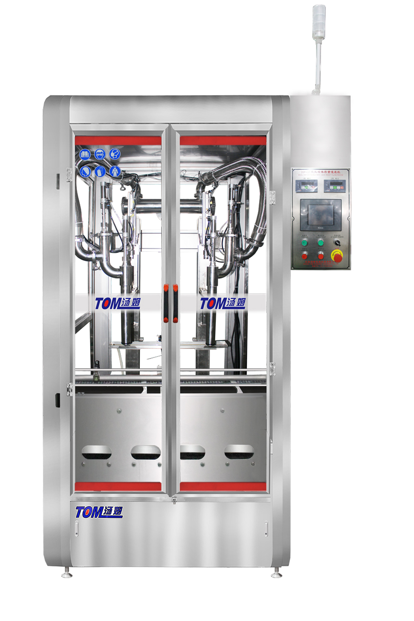 該機(jī)是針對10kg以上,50kg一下液體的灌裝而設(shè)計的雙頭灌裝機(jī),下料頭可深入桶底灌裝,可有效減少泡沫的產(chǎn)生,具有結(jié)構(gòu)簡潔,定量精度高,產(chǎn)量大等優(yōu)點(diǎn)。
