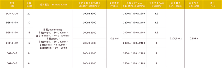 DGP-C直列式常壓灌裝機技術(shù)參數(shù)