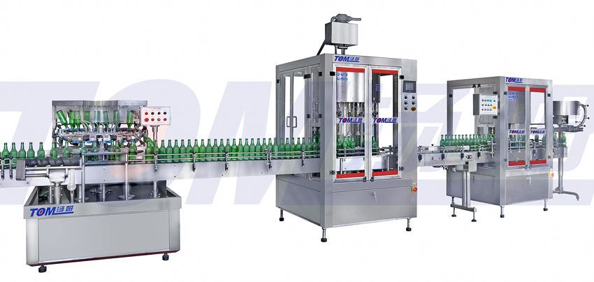 本流水線適用于各種玻璃瓶、陶瓷瓶、樹脂瓶的沖洗、電腦計量灌裝、壓蓋,是白酒、黃酒、果汁、不含氣飲料包裝的理想機型。