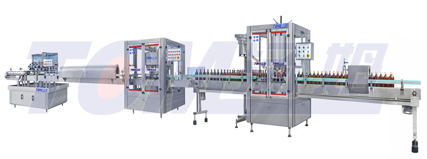 酒類、調(diào)味品回收瓶灌裝、壓(旋、扎)蓋,貼標(biāo)工作流水線
